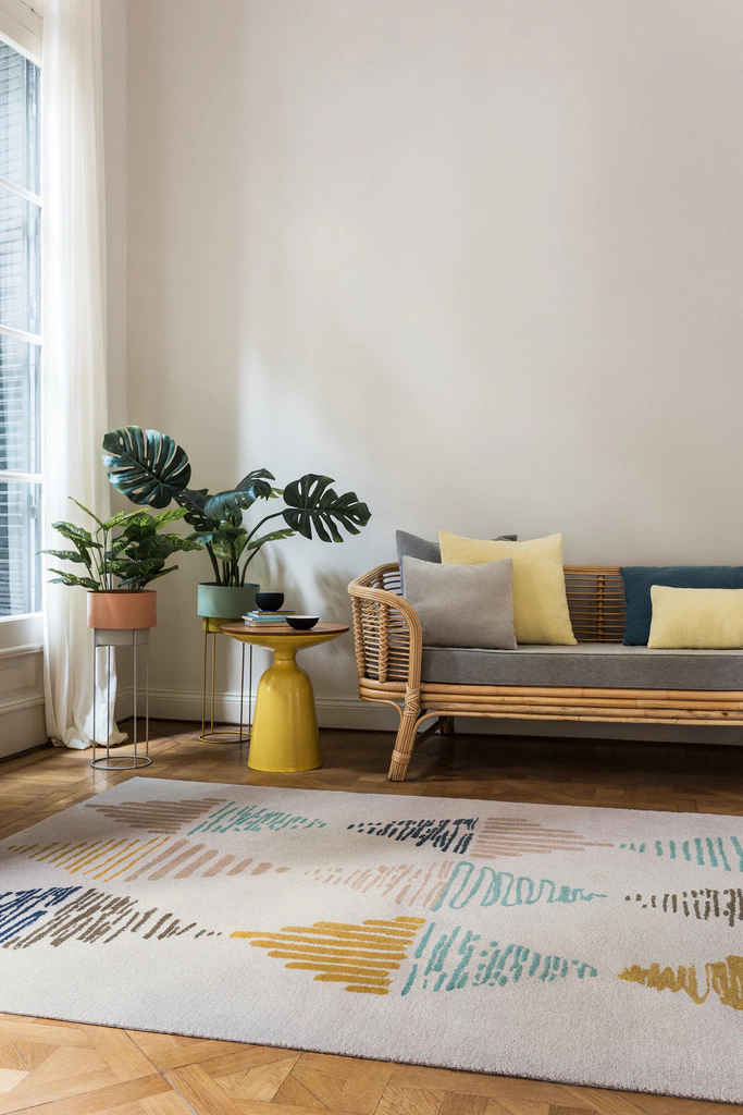 Rombos forma parte de nuestra colección Recreo. Con estilos abstractos y figurativos en trazos libres o definidos, la colección transmite frescura y calidez. Todas las propuestas de diseño que integran Recreo son tejidas en pura lana virgen. La suavidad de su textura y su paleta de colores calmos resaltan con encanto la armonía de los espacios, volviéndolos acogedores y agradables.