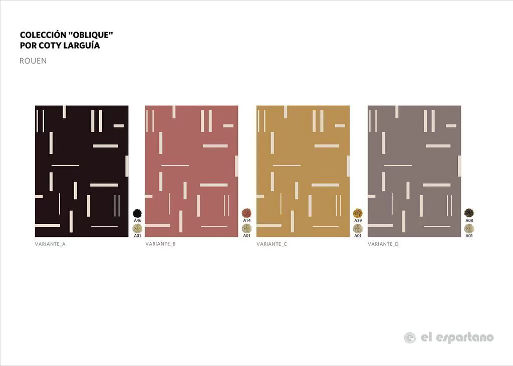 Inspirada en la arquitectura Brutalista y el Art decó, los diseños de Coty Larguía fusionan geometrías dinámicas mediante superposición de capas, generando un efecto tridimensional. Los diseños abstractos, siempre protagonistas en sus colecciones, contrastan con la suavidad de la lana generando una base con carácter a la hora de diseñar cualquier ambiente.