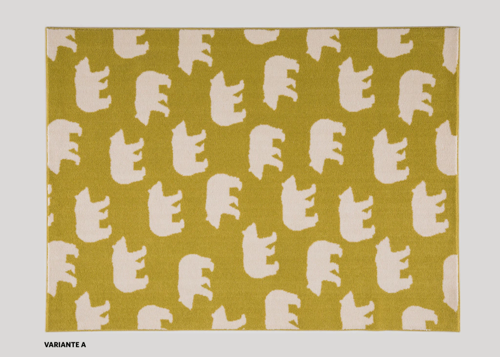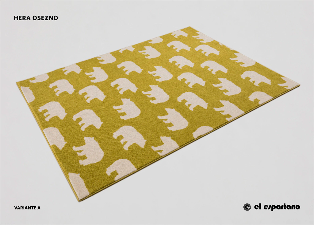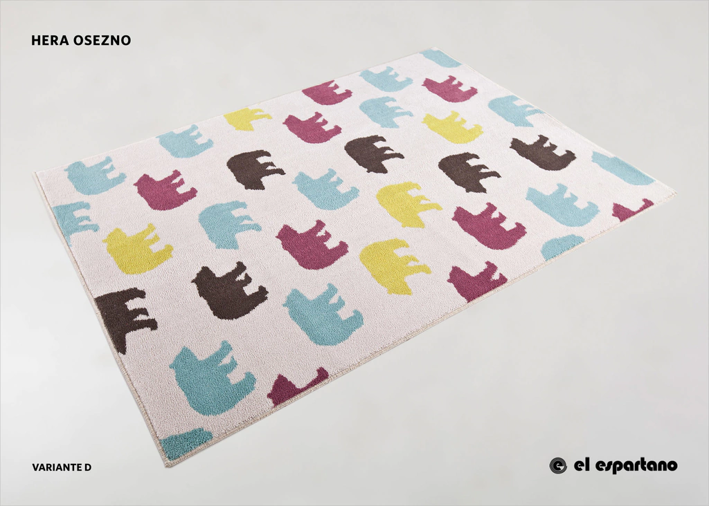 Tomando la icónica imagen del oso de la marca Pesqueira, Valeria Pesqueira y El Espartano crearon la alfombra "Osezno". La misma forma parte de nuestra línea de carpetas infantiles Hera, tejidas en telar utilizando hilados que combinan la suavidad de la lana y la resistencia del nylon para crear un producto de calidad y belleza única.