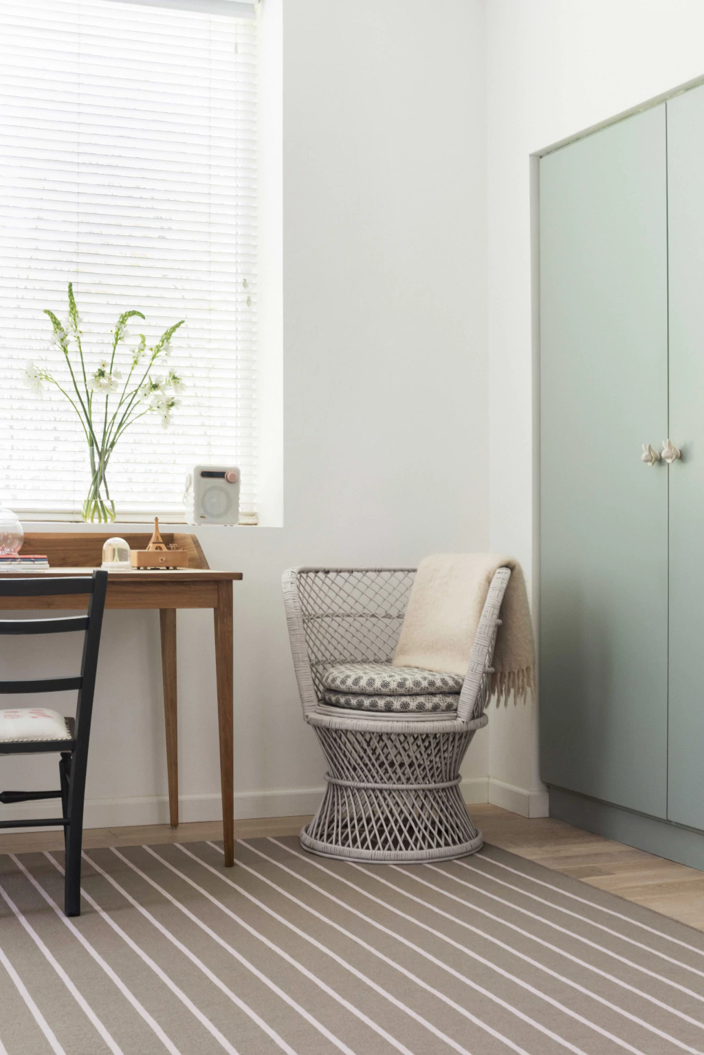 Las carpetas Meraki están confeccionadas en nuestro telar Wilton. Inspiradas en la trama de telares tradicionales y artesanales, cuentan con un tejido plano y liviano. Sus hilados de pura lana virgen le otorgan una textura cálida y extra suave. En diferentes combinaciones de grises, beige y negro, las rayas logran un diseño clásico y atemporal que no pasa de moda y se integra con facilidad en todo tipo de ambientes. La neutralidad de sus colores permite combinarlas a la perfección con pisos de madera, cemento o incluso cerámicos.