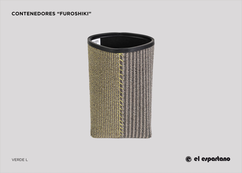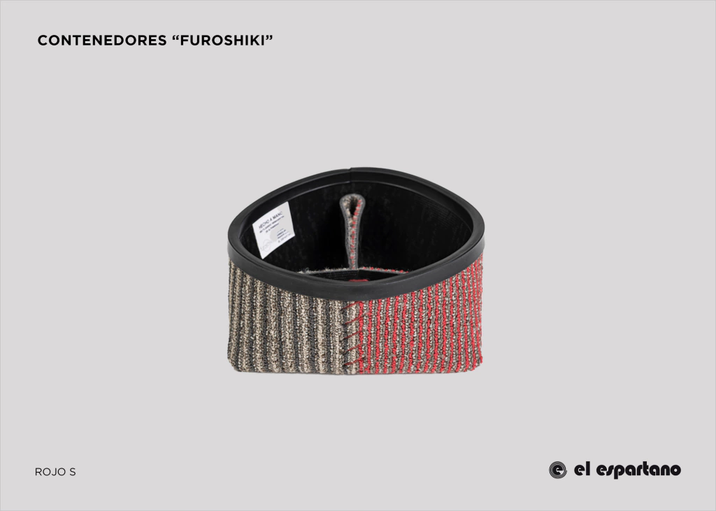 Los contenedores pertenecen a la línea Furoshiki creada por Luciana González Franco, diseñadora industrial enfocada en el upcycling y el diseño circular. La colección encuentra su inspiración en el arte japonés de envolver. El “furoshiki” es un envoltorio tradicional de la cultura japonesa hecho a partir de una pieza de tela cuadrangular.